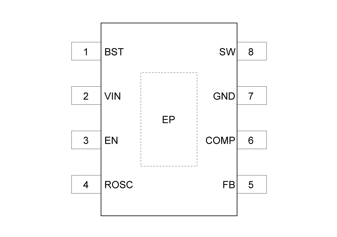 9 | EP | 封裝的袒露墊片。不外部電毗連。將EP焊接到GND引腳并毗連到大型銅立體,以下降熱阻。 |